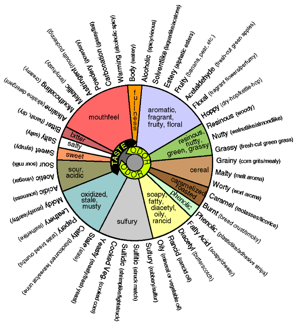 What happens here is you boil those little buggers (or you get them processed into a form that looks like hamster food) and that moves alpha acids and oils from them into your beer. Those particular hops taste of lemons and grass, but the category overall ranges from pine, to citrus, to pepper, to fruit. Covering what every particular type of hops brings to beer flavors is a work more suited to something book-length, but there are some rough guides floating around without too much work at google. This one covers a good whack of the more commonly used hops in homebrewing. Some of the oils and acids are more volatile than others, and they’re used to bring beer much of its aroma. Since smell is so tied up with taste, the flavors translate pretty directly, you’re just tasting it through a different sensor for a bit before those volatiles finish vaporizing and wafting away. This is why a freshly opened beer is so much better than one that’s been sitting out for a while. The lack of carbonization in the old beer is related, since all that foamy fizz is carrying more of that hops addition up your nose in the fresh.